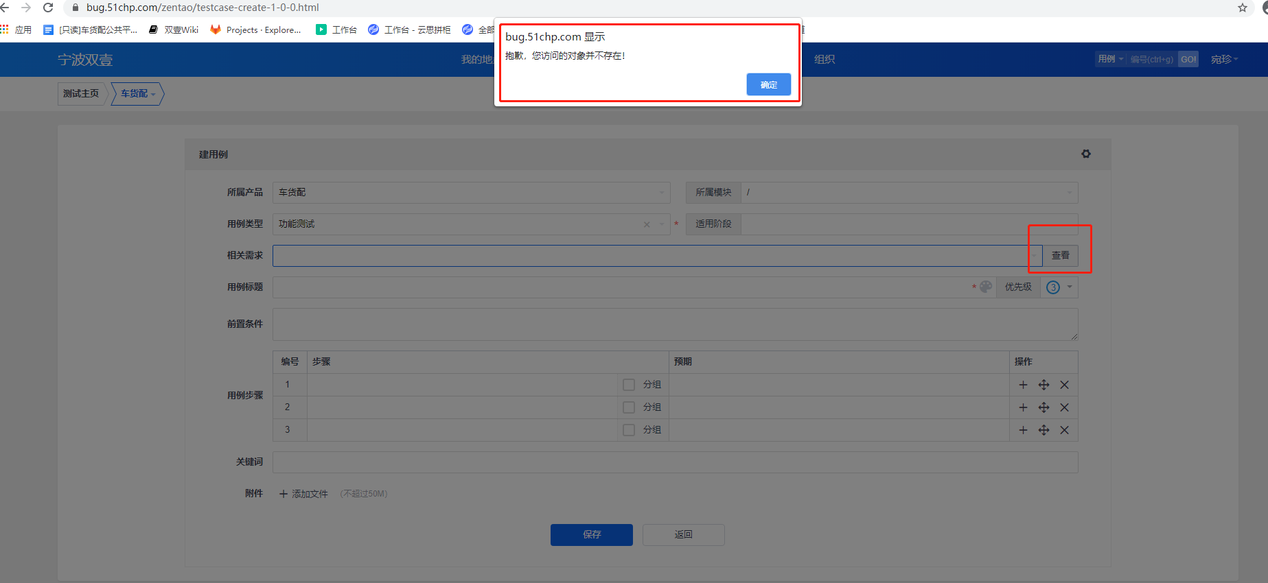 禅道12.3.2,建用例,选择相关用例,选择更多后,点击查看,弹出访问对象不存在,确定之后界面返回到了用例列表界面