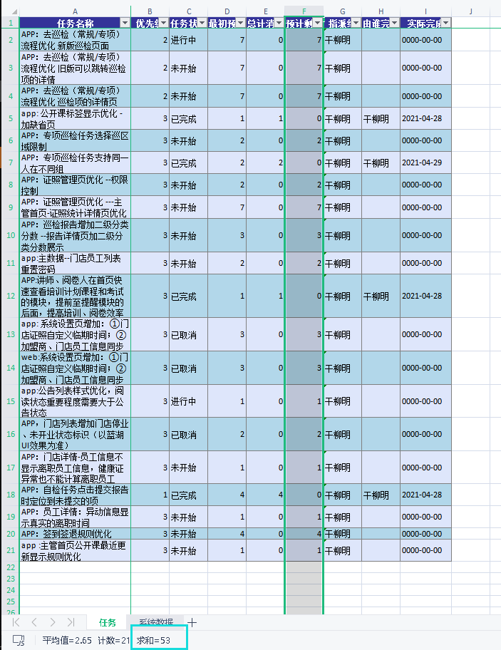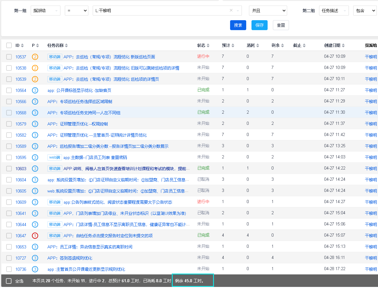 任务状态为 已取消 状态,在禅道页面中不会统计剩余工时的。因为这个任务表示已经不做了。如果工时数还是统计还有问题,可以添加网页上方QQ,邀请进群,方便截图排查问题。