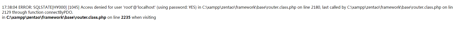 报错显示数据库连接密码错误。可以看一下xampp/zentao/config/my.php 文件中的数据库连接信息,将密码设置为默认的123456或者空试一下。如果还是显示这个报错信息,可以添加网页上方QQ,邀请进群,方便截图进一步排查问题。