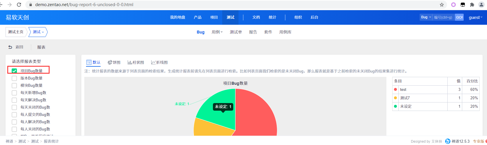 测试模块生成报表的功能现在没法按项目bug数量生成报表