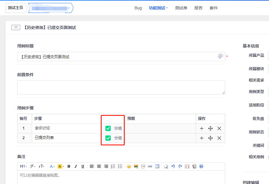 您好,当前贵公司使用的禅道版本是多少呢?本地测试12.5.3版本 没有复现,另外已经分组的用例步骤就不要在勾选分组按钮了,可以通过多增加几列步骤看下。