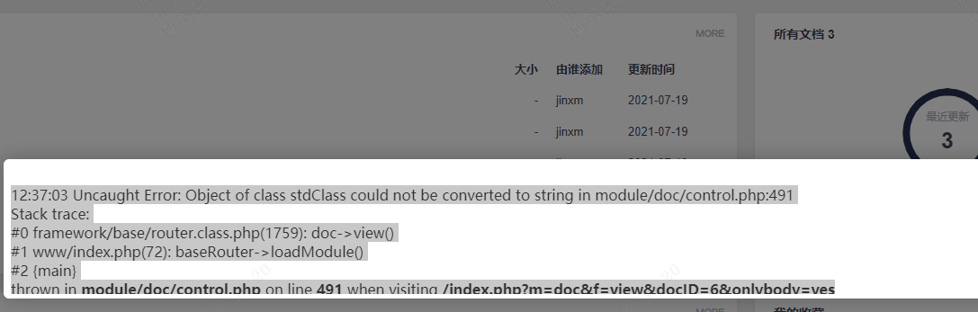 12:37:03 Uncaught Error: Object of class stdClass could not be converted to string in module/doc/control.php:491