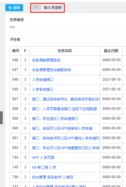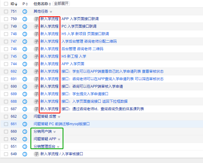 为什么 新入学流程 这个父任务下的子任务全部都被列出来,无法折叠?