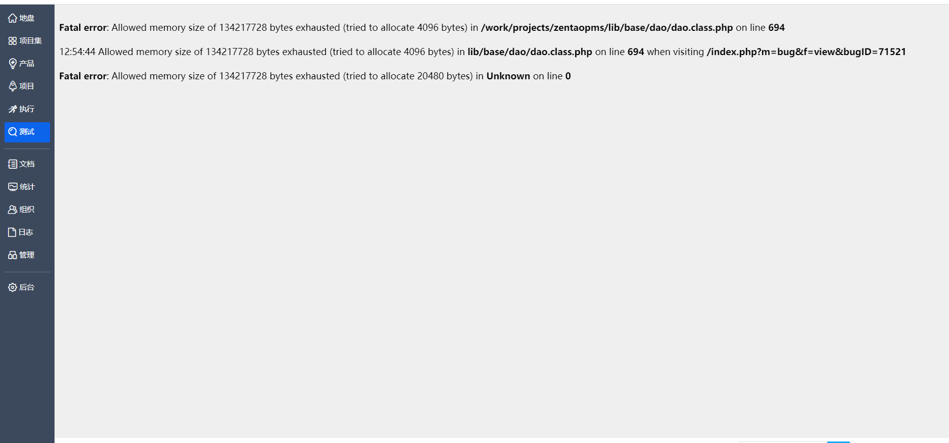 点击bug,查看详情页面会出现如图错误,不是必然出现,但是出现频率较高