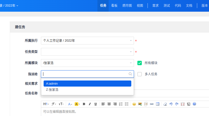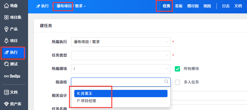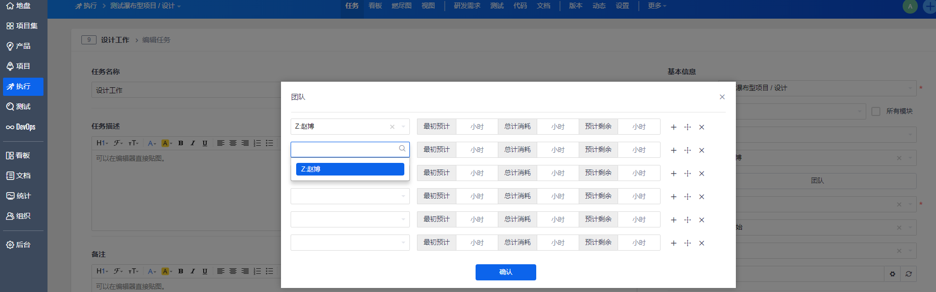 瀑布模型项目、团队分配完4个人、新建任务时选不了成员、只显示阶段负责人,不显示其它的三个人,敏捷模式没问题