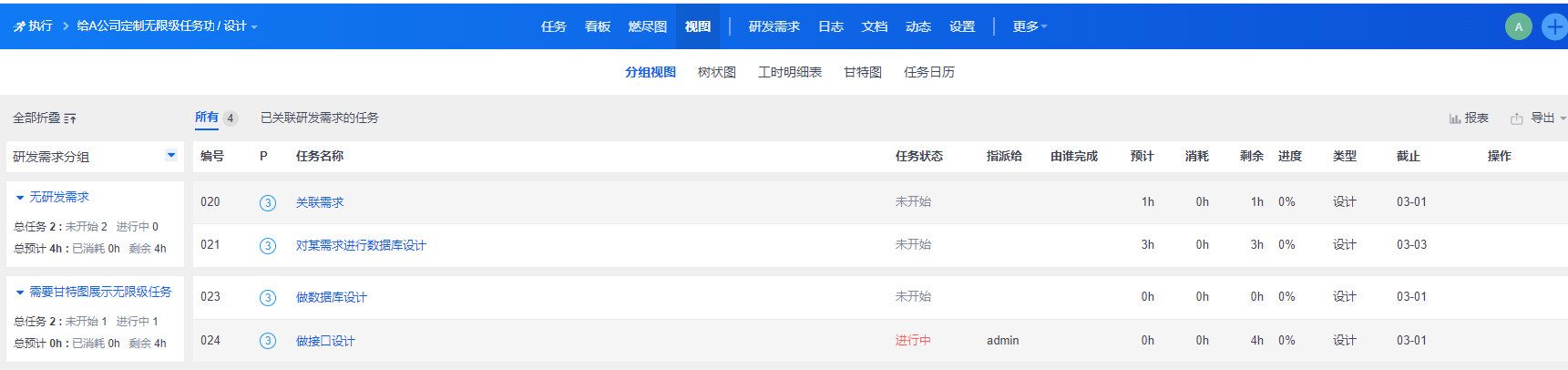禅道毕竟是通用版本,很多公司的需求名称会偏长一些,这个地方也是做了一些取舍。另外,如果查看需求和任务的关联关系,也可以试试任务试图的分组查看功能: