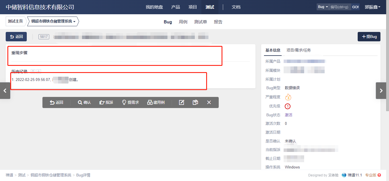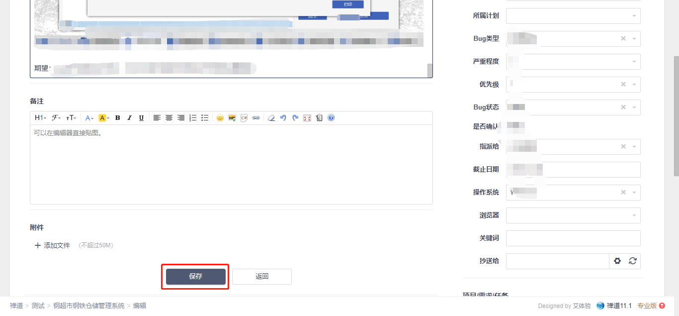 修改【重现步骤】内容,然后保存: