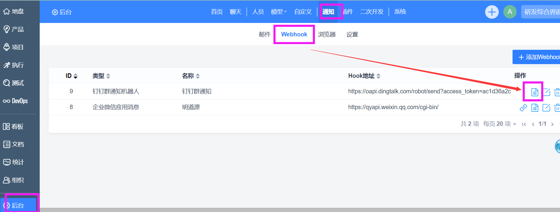 还有webhook配置页面,配置了关联项目和执行的话,需要关联了产品或者执行的话,只有关联产品或者执行的动作才会触发。