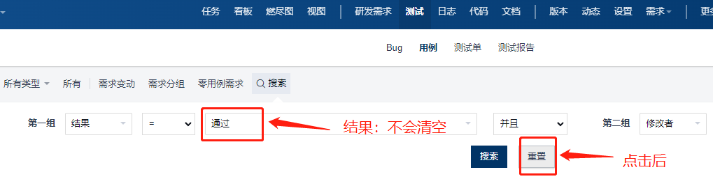 您好,对于用例的搜索,结果条件的重置为通过,是因为默认的字段值就是通过,需要确认这个问题的话,可以尝试将结果的搜索结果设置为其他项,点击重置,会自动重置为通过。