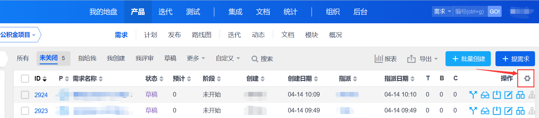 我的地盘中,需求部分为什么不能参考产品需求部分增加自定义设置列,没有自定义设置列,在建完任务后,时间久了、需求多了之后就区分不出来哪些建了任务哪些未建任务,建议优化