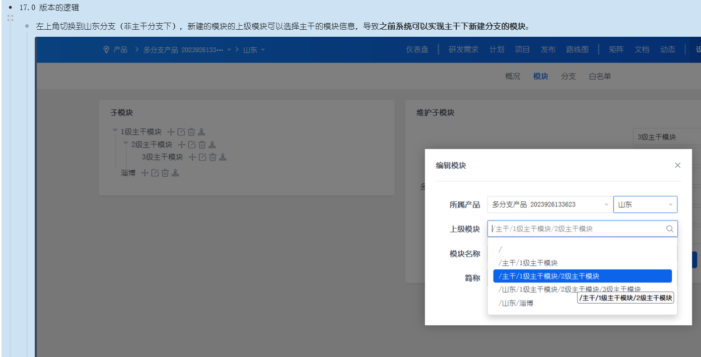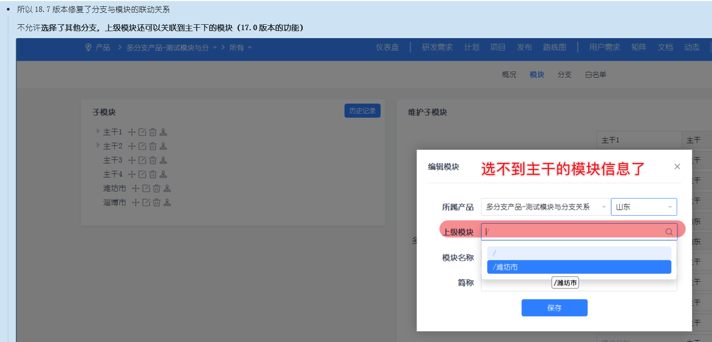 这个问题也会导致可以在主干模块下出现分支模块的数据,近期也会修复