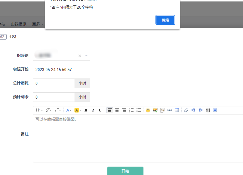 禅道默认备注不是必填项,也没有设置必须大于20个字符;