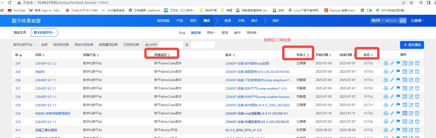 建议测试-测试单页面 提供按照负责人、状态和项目检索的功能,方便测试人员检索自己的测试单