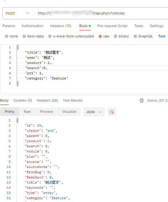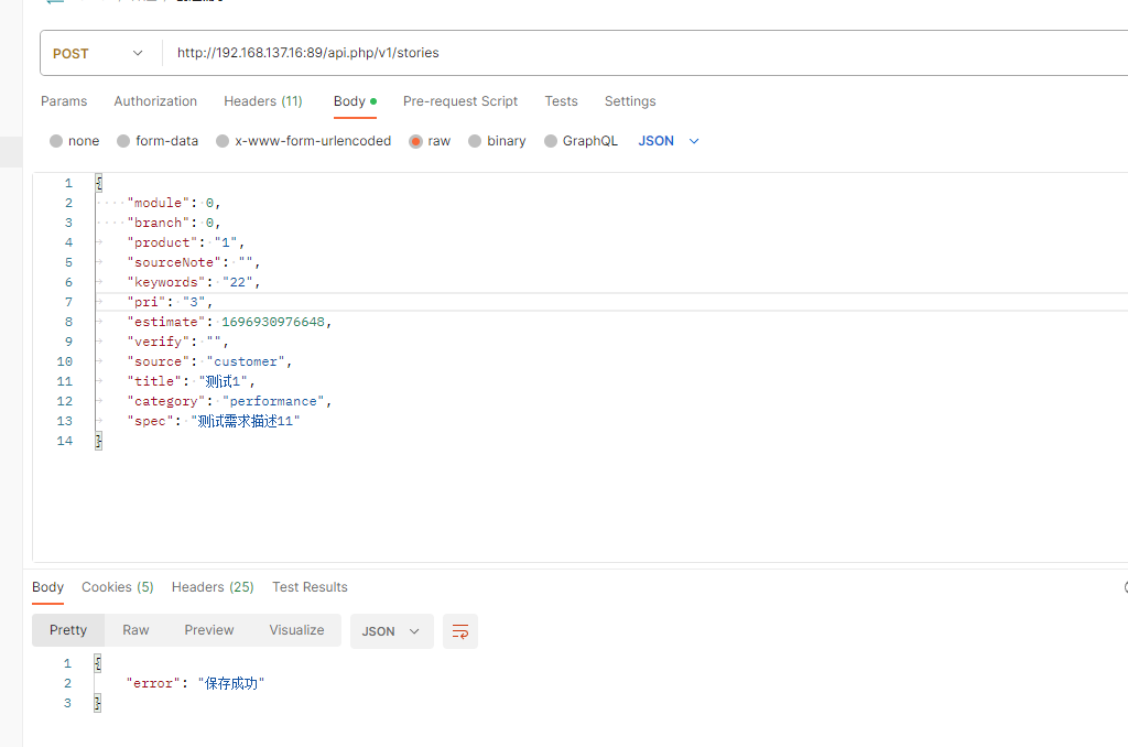/stories调用此接口创建需求时,禅道上面已经创建成功,但返回信息不对,调用和返回如下:
