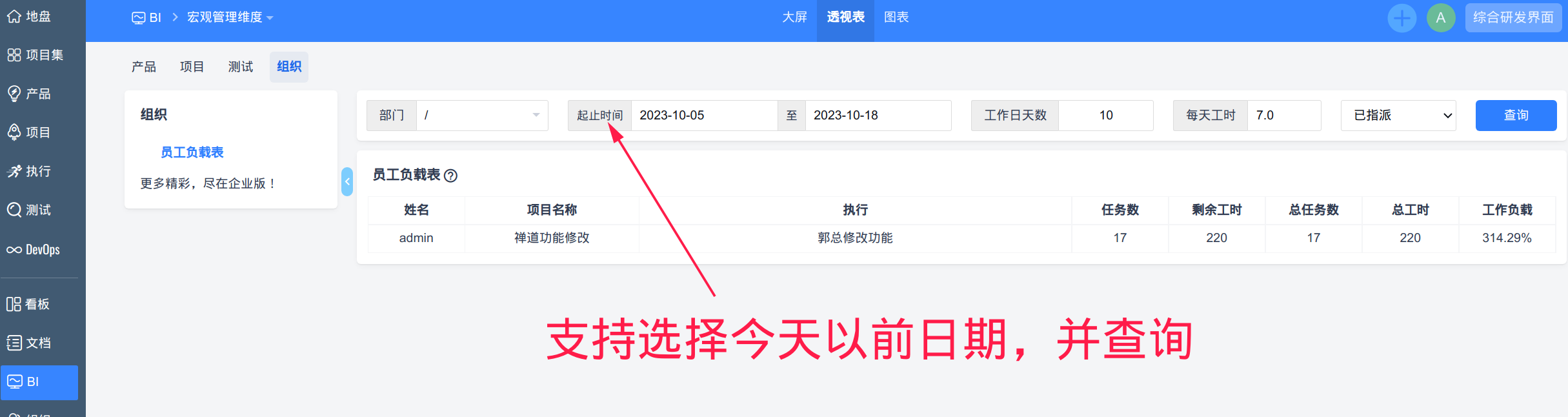 员工负载表:负载是计算将来一段时间的压力情况,所以时间是未来的。可以试试人力资源日历插件,安装插件过程有问题的话,可以联系官网顶部商务QQ,邀请加入禅道技术交流群沟通。