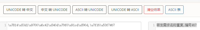 创建需求时报错{"error":["\u7814\u53d1\u9700\u6c42\u540d\u79f0\u91cd\u590d,\u7f16\u53f7467"]}