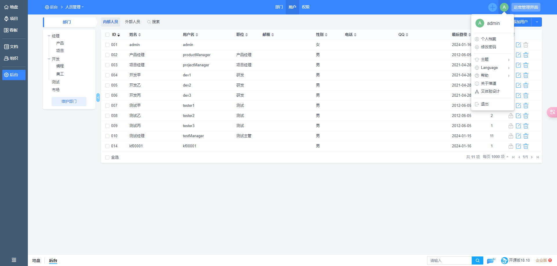 我从17.8升级到18.10后超级管理员在人员管理里面看不到全部用户了,但是其他账号可以看到全部用户,并且超级管理员看不到全部项目
