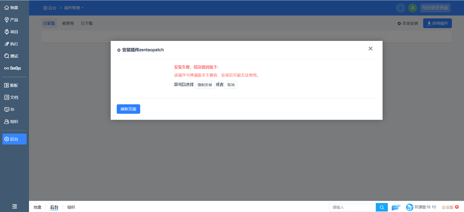 显示与禅道版本不兼容,强制安装会有什么问题吗