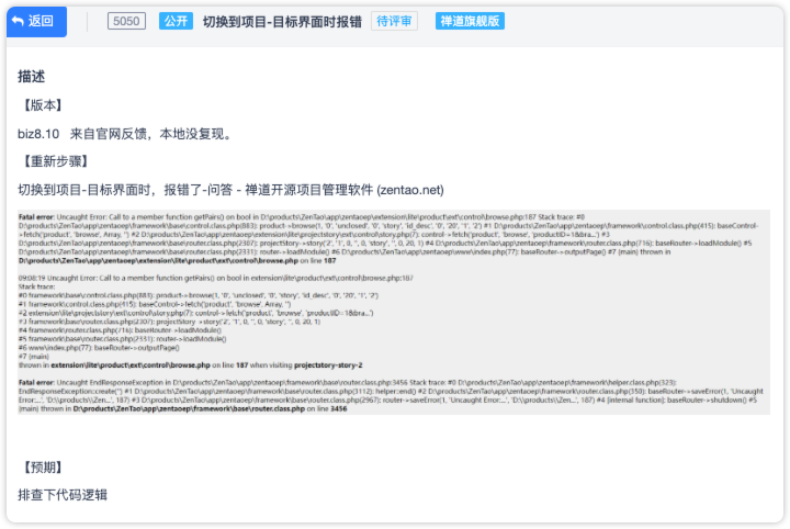 解决在运营管理界面时切换到项目-目标界面报错