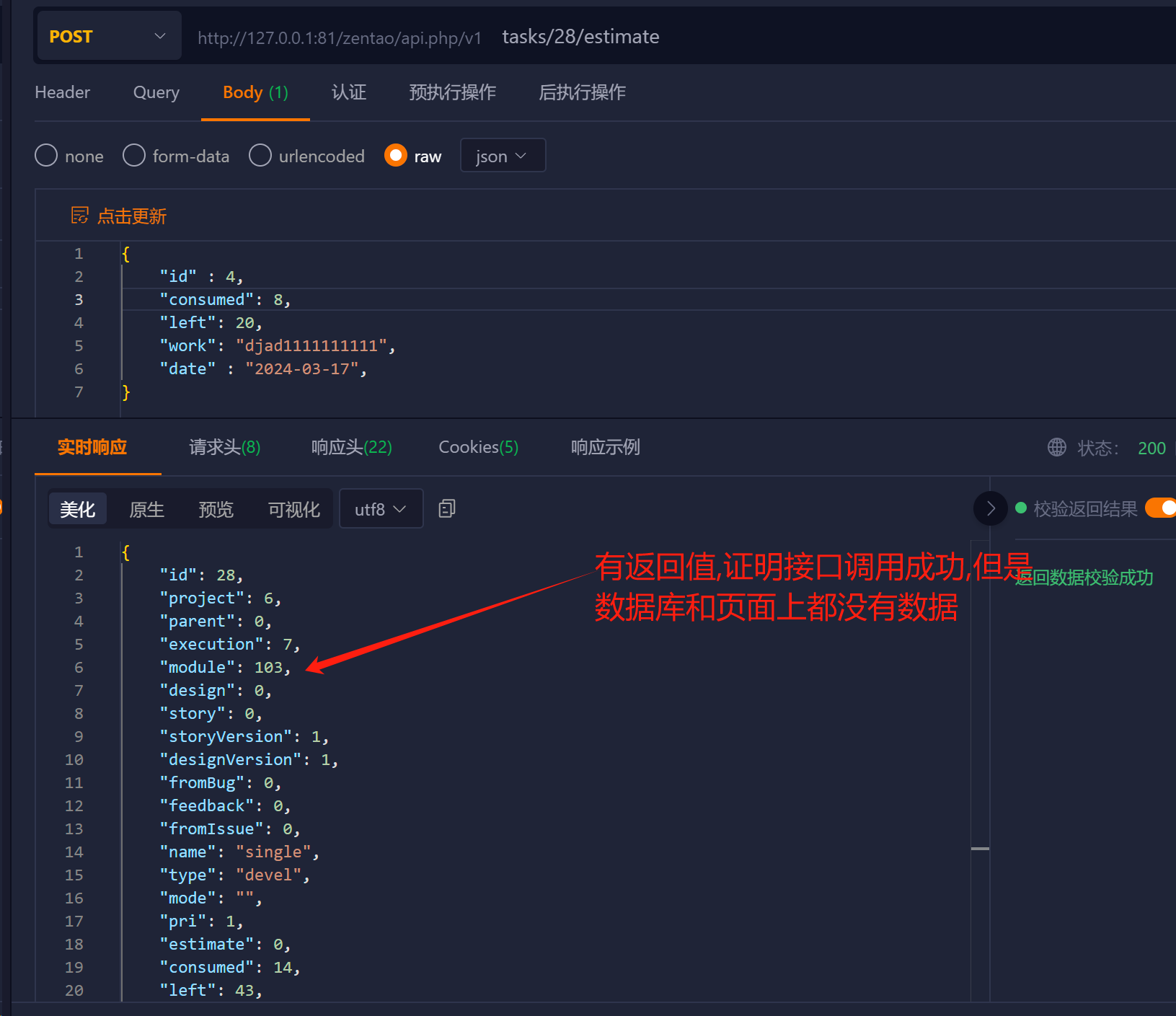 我在源码中找到一个/tasks/:id/estimate 这个接口post 请求有返回值, 但是界面和数据库里都没有数据, 拜托了