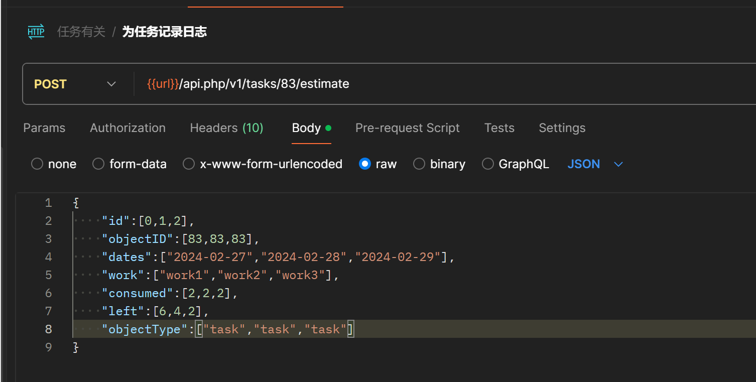 新版restfulAPI记录日志接口可以参考下以下截图,objectID就是对象的ID,objectType就是类型,比如task story