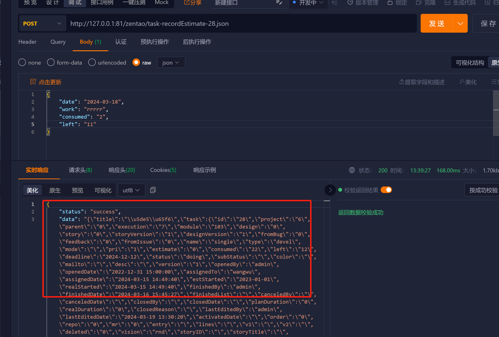 您好,目前新版本禅道的restfulAPI还不支持直接记录日志的接口,不过可以用JsonAPI,禅道的jsonAPI“所见皆所得”,具体的话可以看下禅道系统里文档-接口文档-内置界面接口 展示的都是jsonAPI。