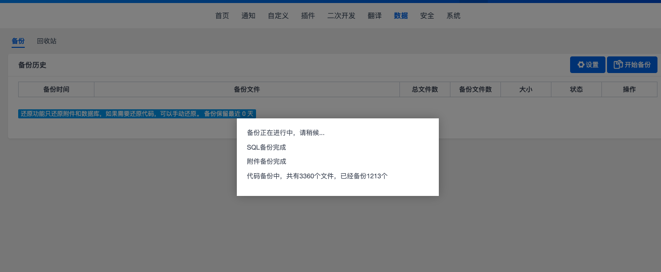 使用控制台的后台数据备份,每次备份到一大半,就直接异常刷新了,备份的磁盘空间看着变大异常后直接将备份过程中的数据直接删除了。