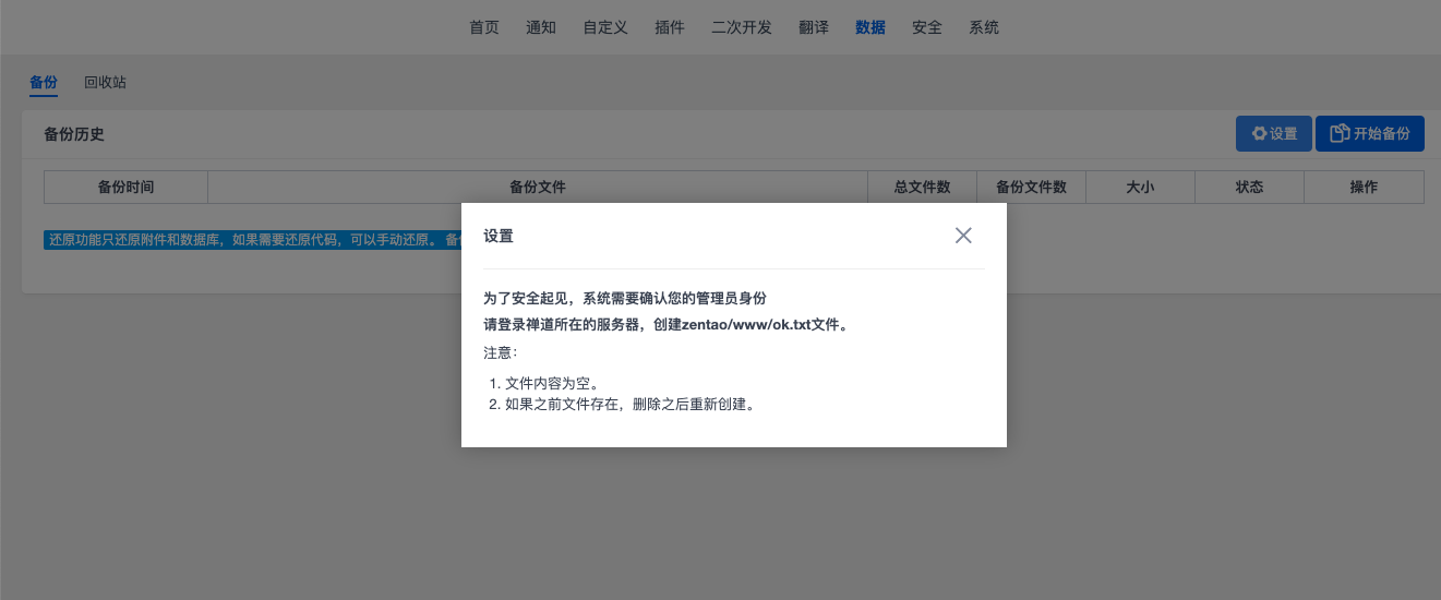 http://www.zentao.net/book/zentaopmshelp/42.html 备份文档