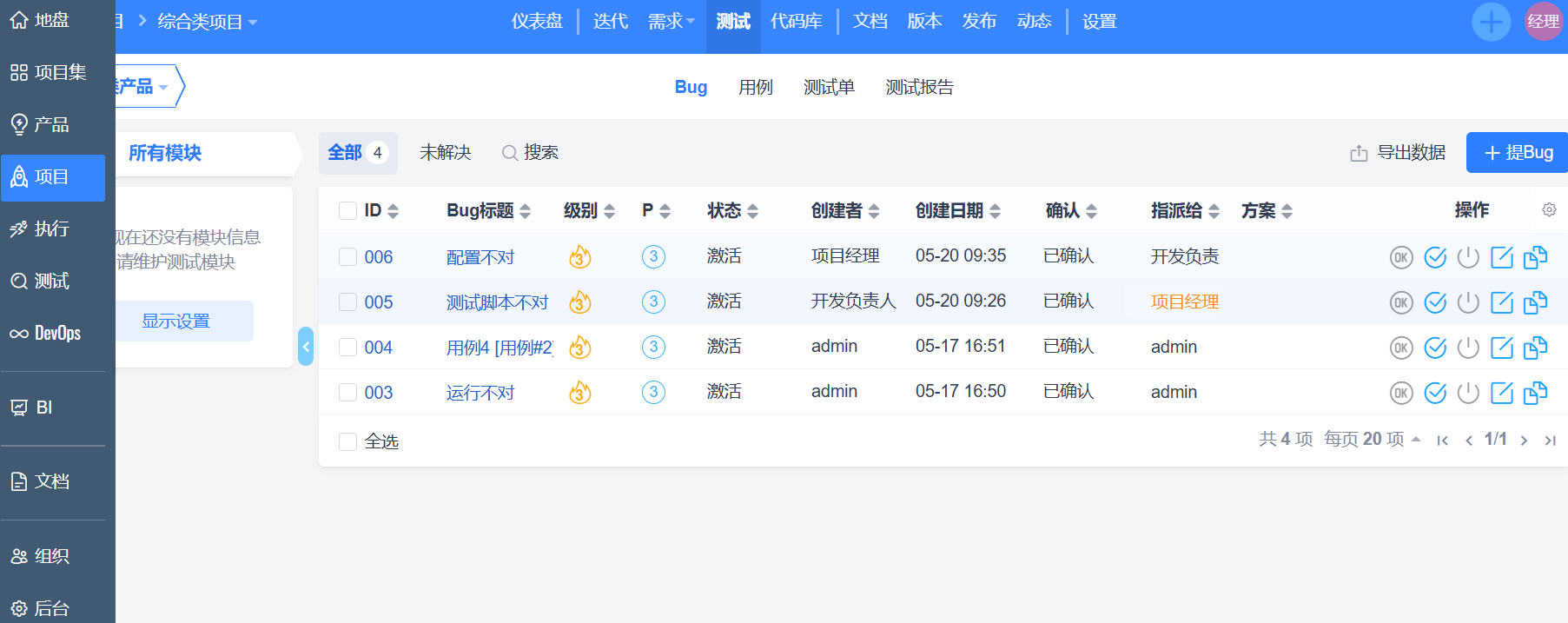 提交了Bug,无论是测试人员指派给项目经理,还是项目经理指派给别人,在执行-看板都看不到Bug(解决中、已确认等)信息