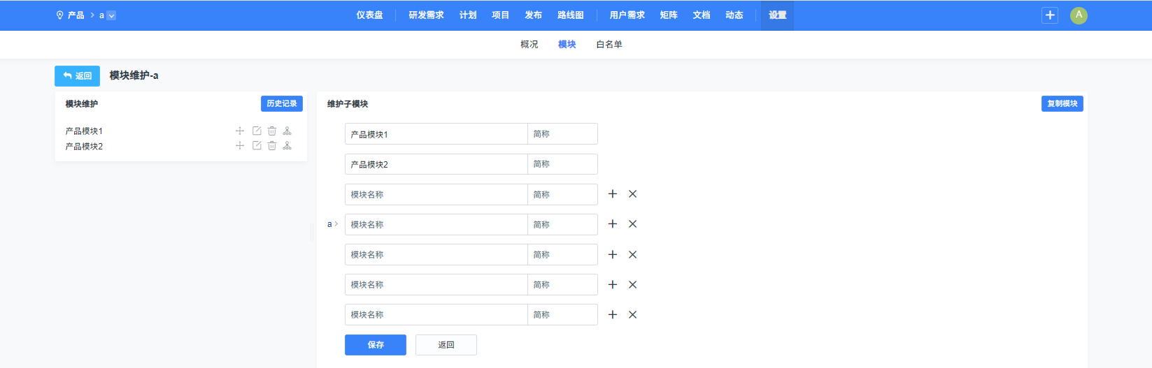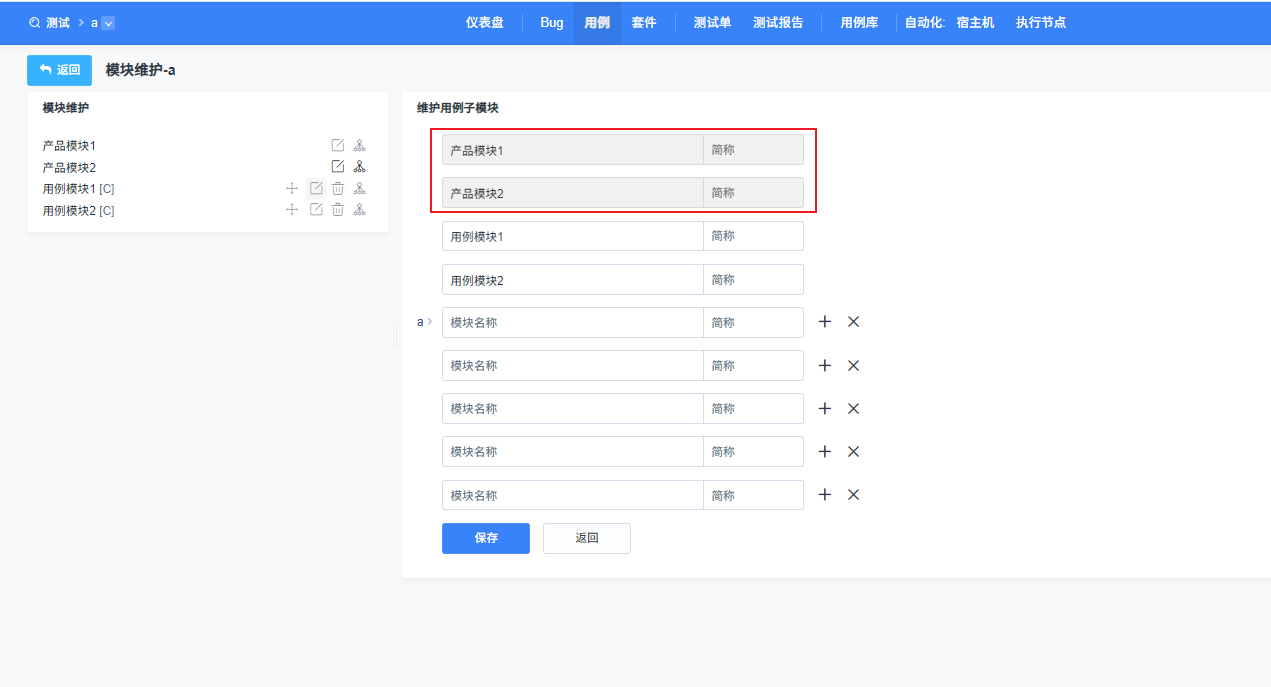 用例模块设置,先前已新建的模块无法手工编辑更新只能挨个点开左边的设置进行单独更新