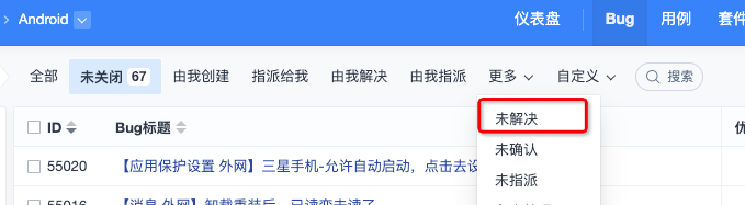 我们已将您的反馈记录, bug 快捷搜索是否可以将“未解决”直接展示到页面上(反馈id 6279)。