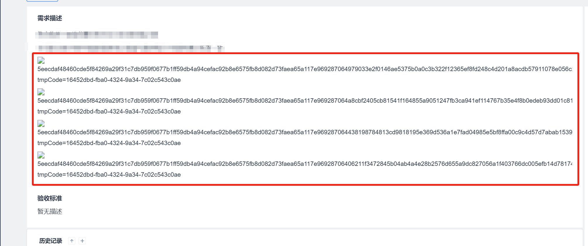 编辑需求描述时,截图复制在页面中并且保存成功的图片无法查看,只显示地址。