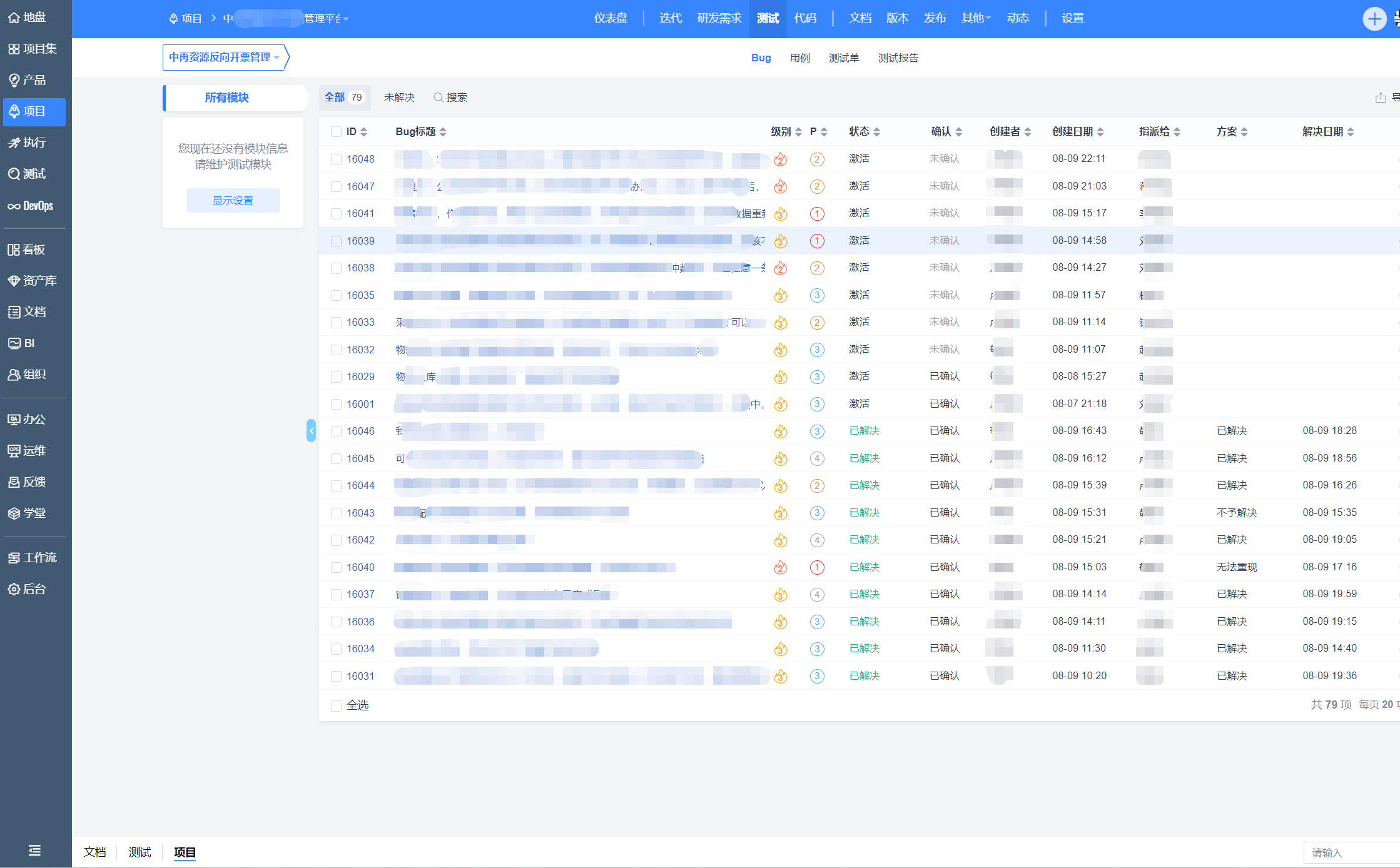 编辑调整了项目的项目集后,原项目的bug不见了