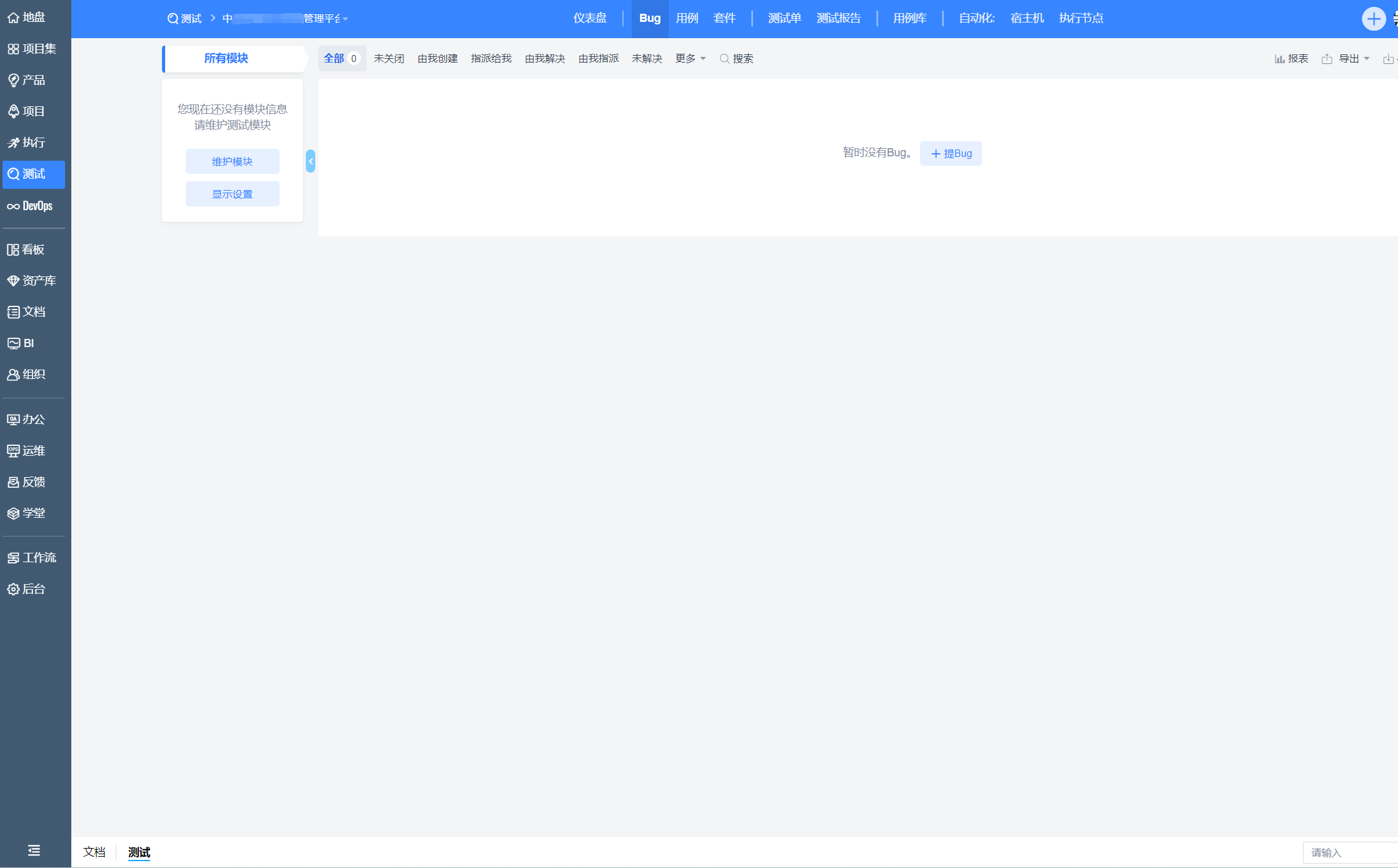 测试功能菜单下查询bug为0: