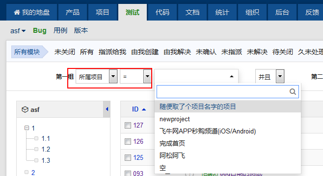 2.【项目】里没有了bug搜索功能,只能到【测试】里去搜索,测试里不分项目,是所有产品的,搜索起来很麻烦