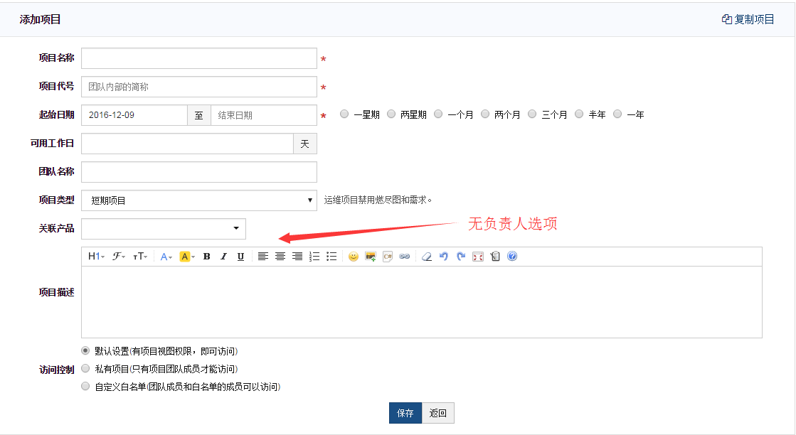 而这个负责人又不是只能从 项目团队中选取,所以没有必要非要等到项目添加后再来修改