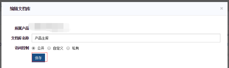 产品-文档菜单下点击右上角 操作 里面的编辑文档库,进入文档库编辑页面后,点击保存,报错