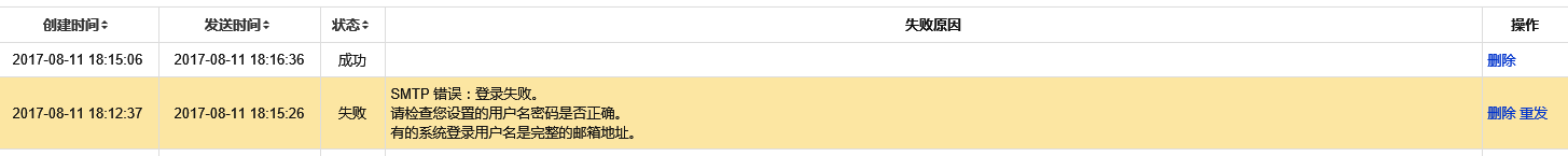 然后在项目中分配任务给另一个帐号,发现没有收到邮件,查看邮件列表发现,提示了失败原因如下,