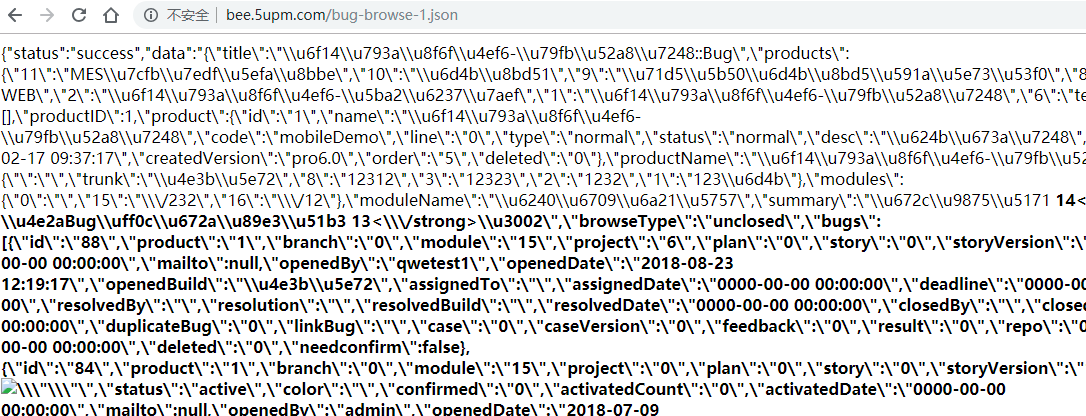 比如我在项目页签,根据bug的状态和时间去搜索,在浏览器可以实现,可是有得到对应json的Api吗