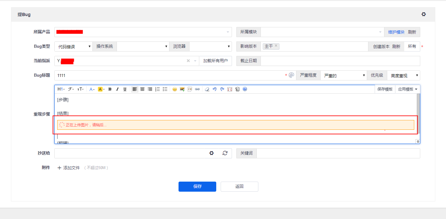 图片撤回,但是出现了上传图片的加载信息,并且该图片无法删除。