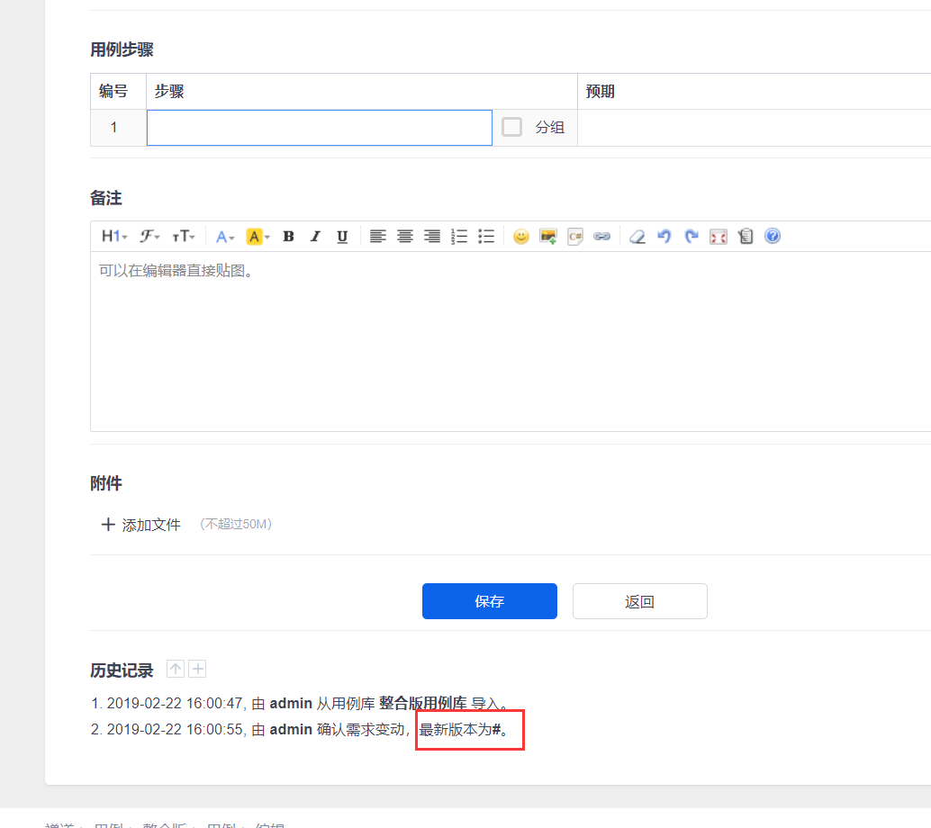 怎么不能上传图片?我在demo站点也是可以重现的,重现步骤为: 1. 新建用例 2. 用例列表页直接选择该用例,并确认需求变动 3. 进入该用例详情页或编辑页,历史记录模块内容中可见版本缺失