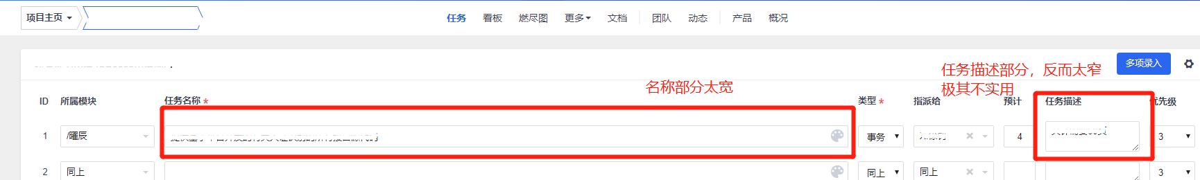 在任务的批量添加中,任务名称部分太宽,而描述部分则太窄