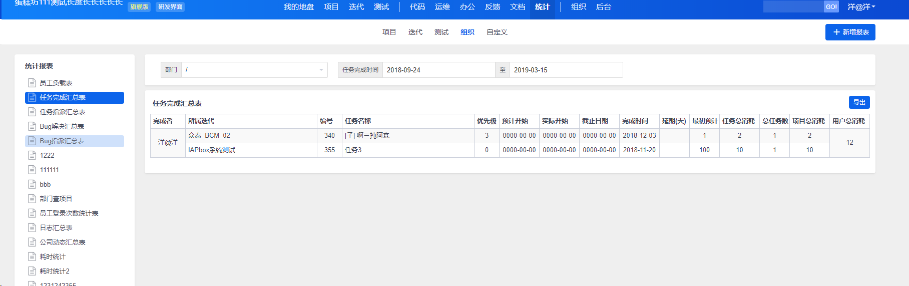 禅道中统计功能,按组织统计,只能选择当前时间-以后某一天区间内的数据。应修改时间可以前后随便选