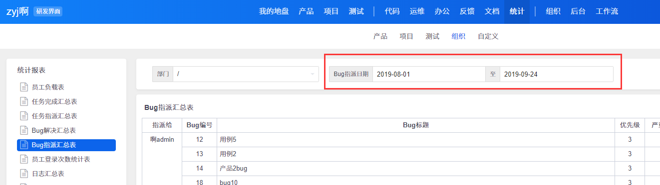 bug 指派日期区间,结束时间日期多向后选择一天,试下,这里的截止时间是当天的 0 时,当天的不会查询到。