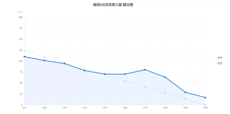 下面以项目管理工具中用户数量最多的 禅道中的燃尽图为例进行说明。