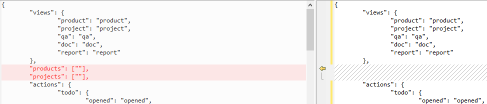 左边zt_group.acl比右边多了"products":[""],"projects":[""]