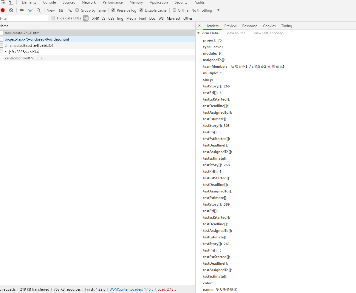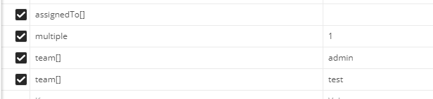 F12看了下,是不是这几个字段,assignedTo[]需要为空,multiple=1,然后成员用team[]标在后面。