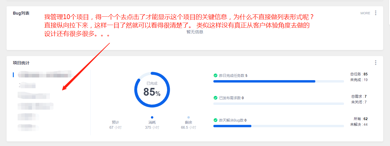 后来实际体验中作为产品需求管理来说交互上就有很多不方便的地方了,整体来说感觉就是功能过多了,对于中小公司来说太重了;也离开禅道一段时间了,近期没有深入体验(转TPAD去了,但是依旧默默的在群里关注着禅道其他的就不好说什么了),就说之前说的几个问题,依旧没改的地方,以及现在用的平台使用体验对比吧,(也算是老生常谈好了,哈哈 意见提了,改不改是你们的问题了,哈哈哈哈哈);