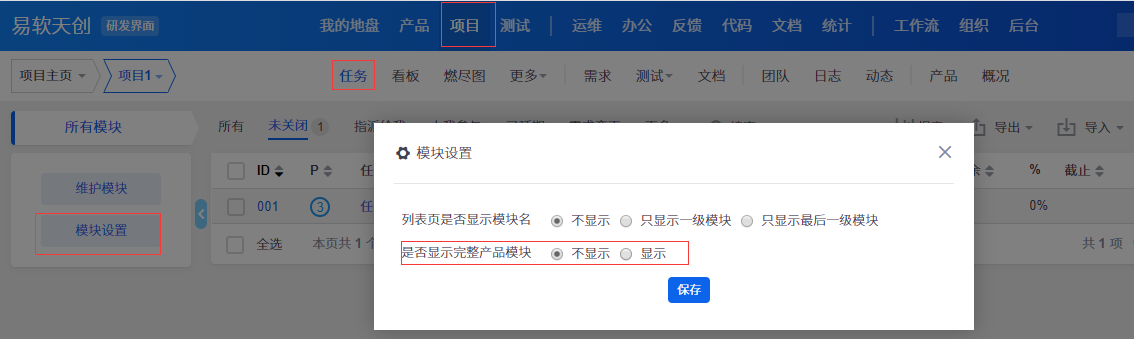 产品模块及分支中新增的模块名称在关联的项目任务页面中未显示