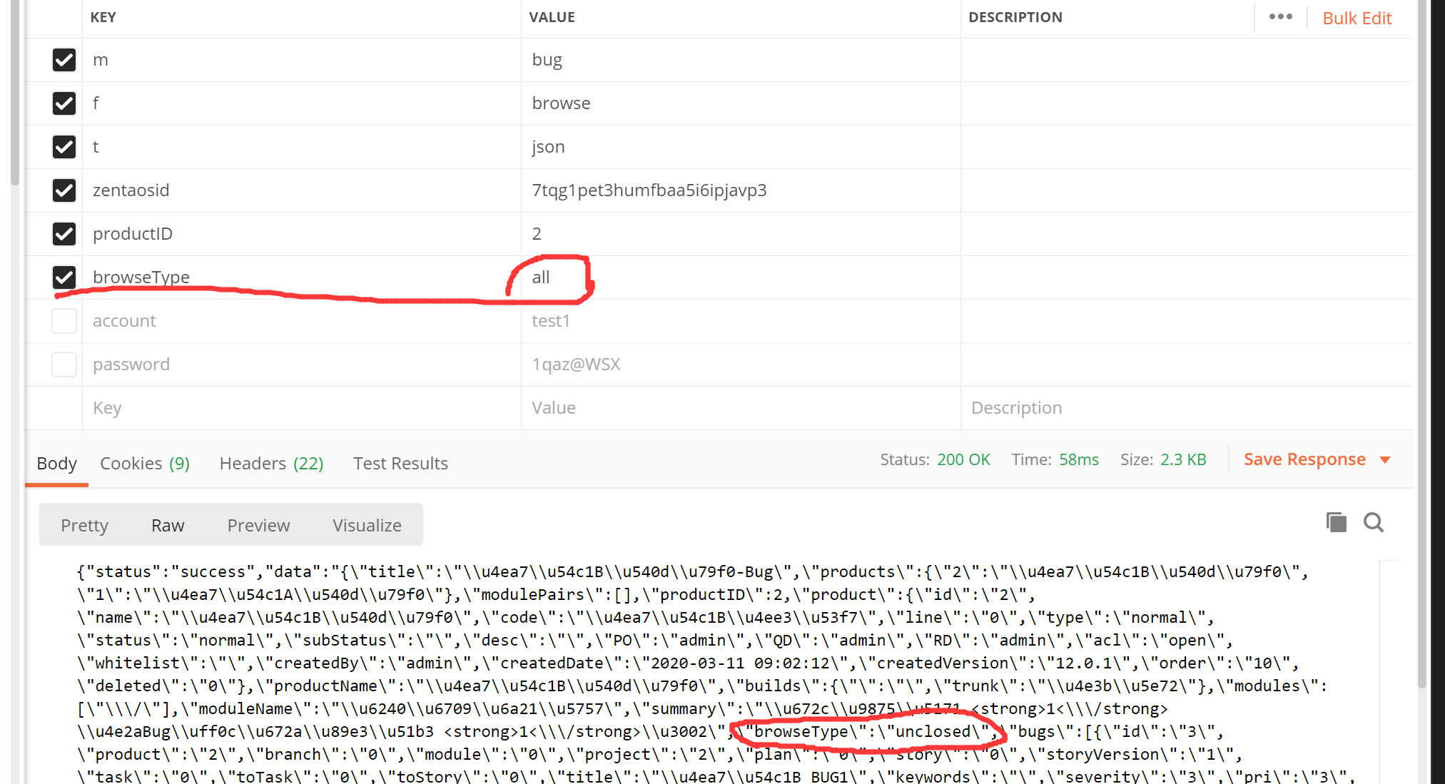 如同这个例子,GET方式,指定了browseType为all,或者unresolved等其他非默认值,都没有作用,依然返回的是unclosed方式。